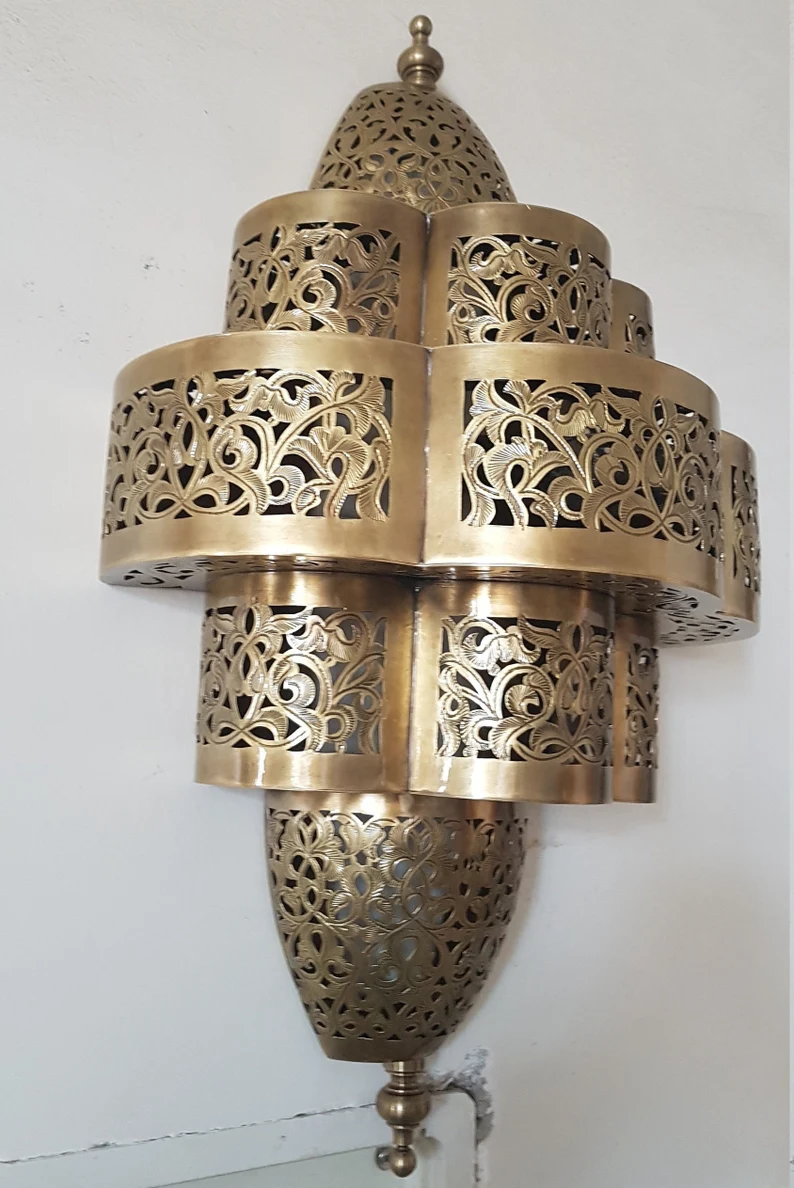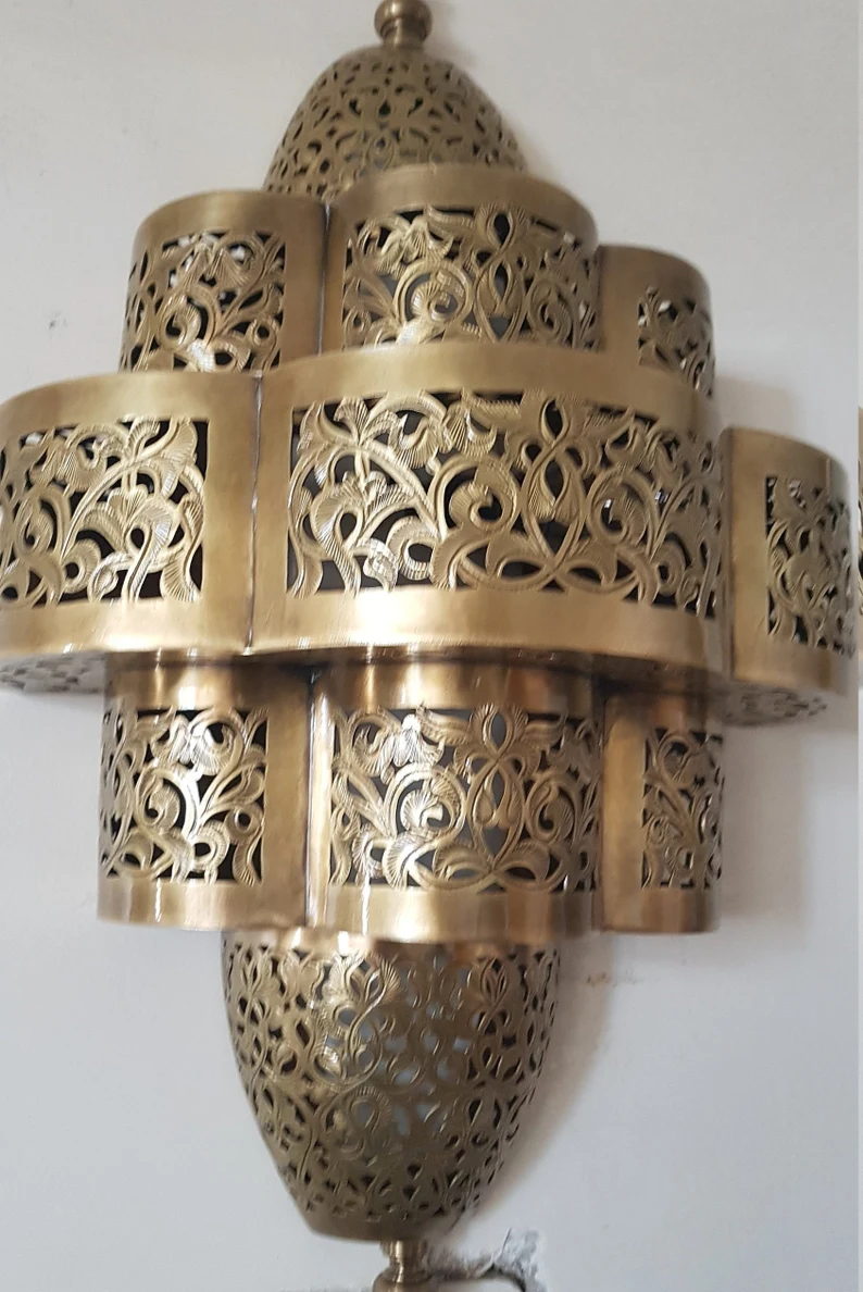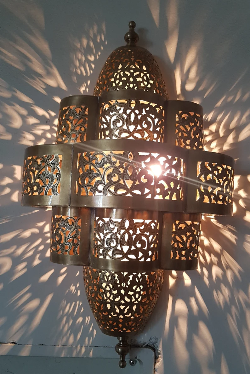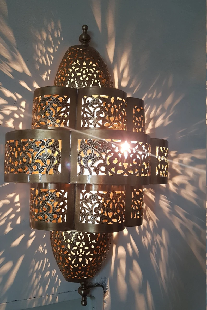 Beautiful arabian sconce light is made traditionally with a lovely geometrical pattern will add to your home a beautiful and warm touch. It is 100% made from copper, a high quality handmade beauty with very close attention to details. Dimensions may vary depending on the demand.
